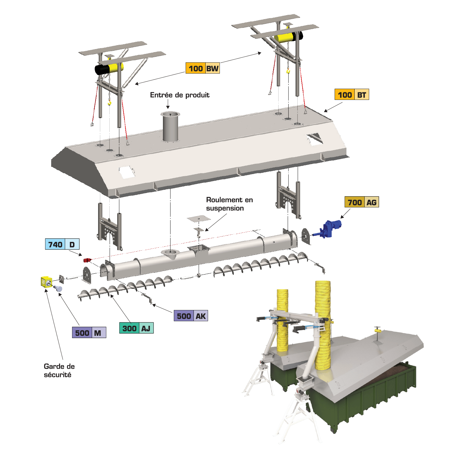 L’épandage est effectué de manière optimale et l’opérateur n’a pas à déplacer les tas de façon manuelle. Pour limiter les odeurs, une hotte peut être ajoutée à la structure mobile afin d’acheminer le tout vers un système de traitement des odeurs.
